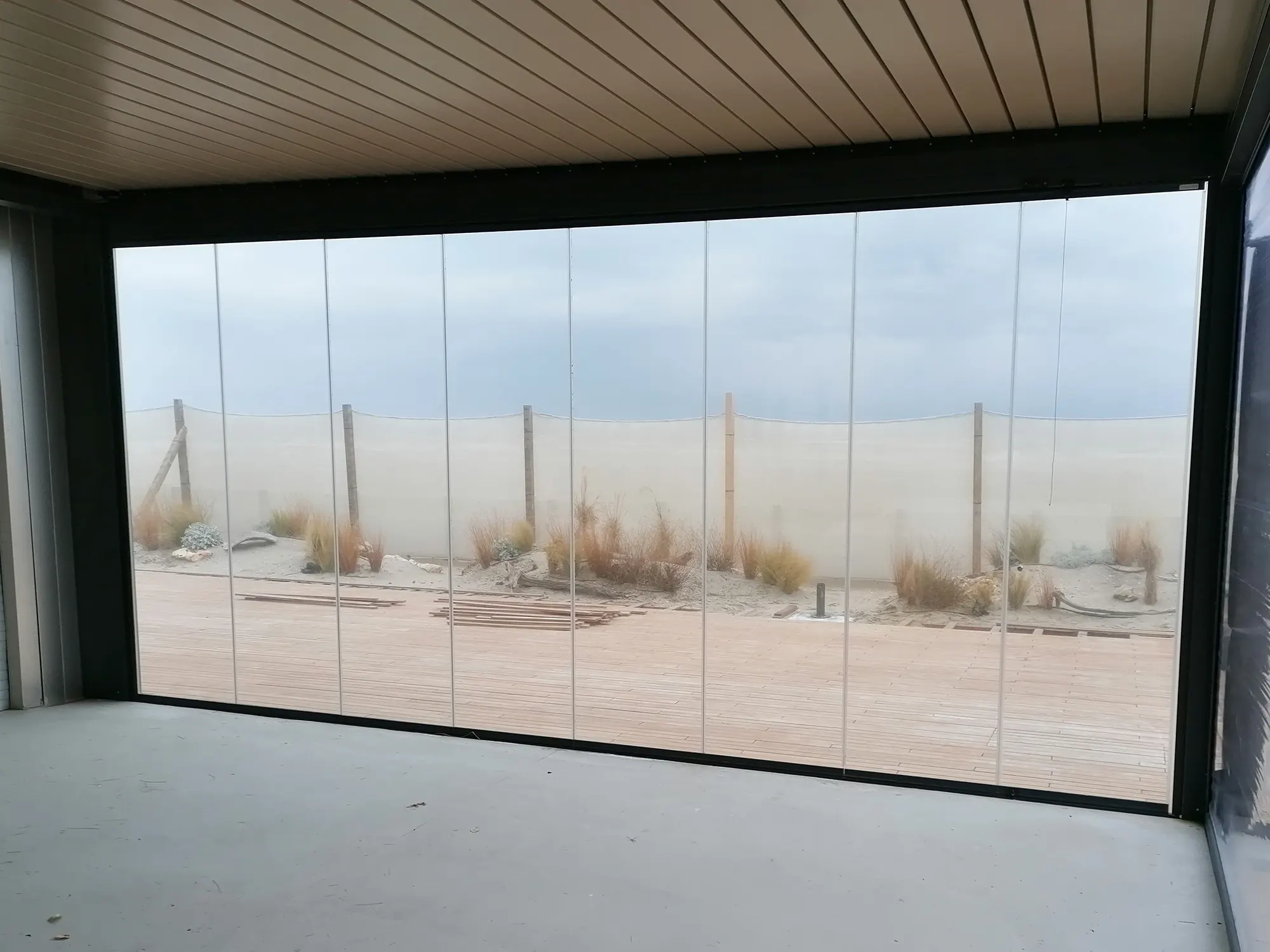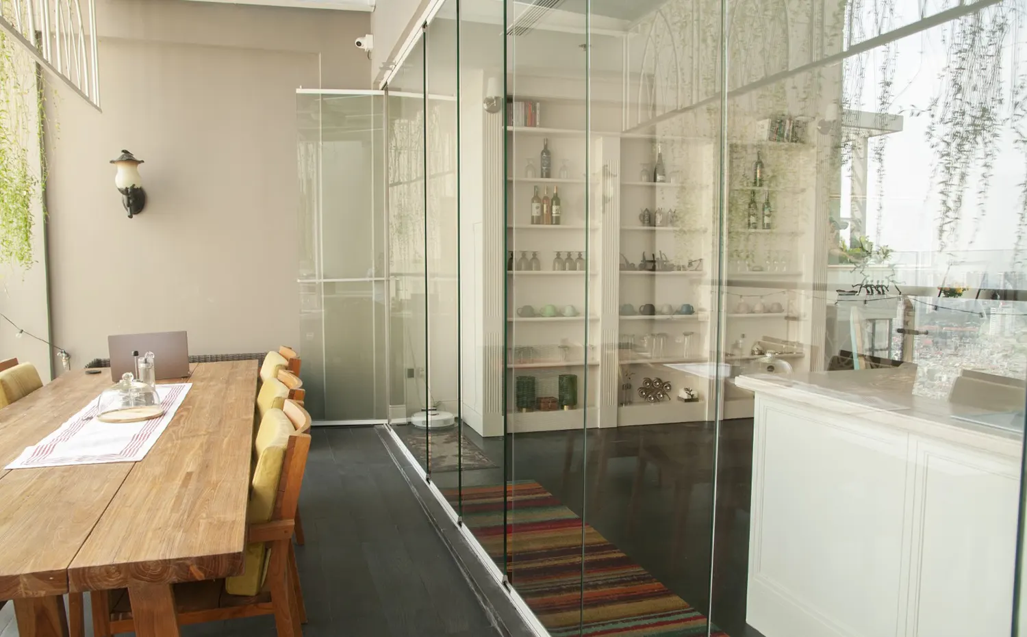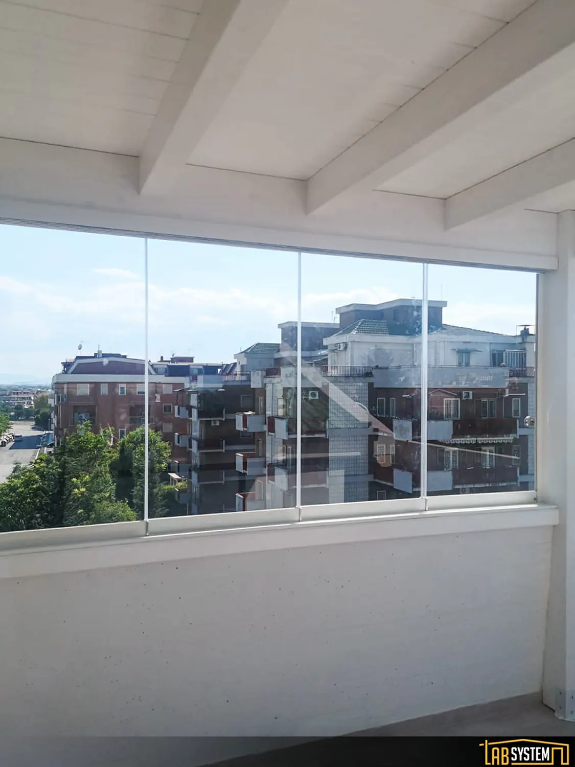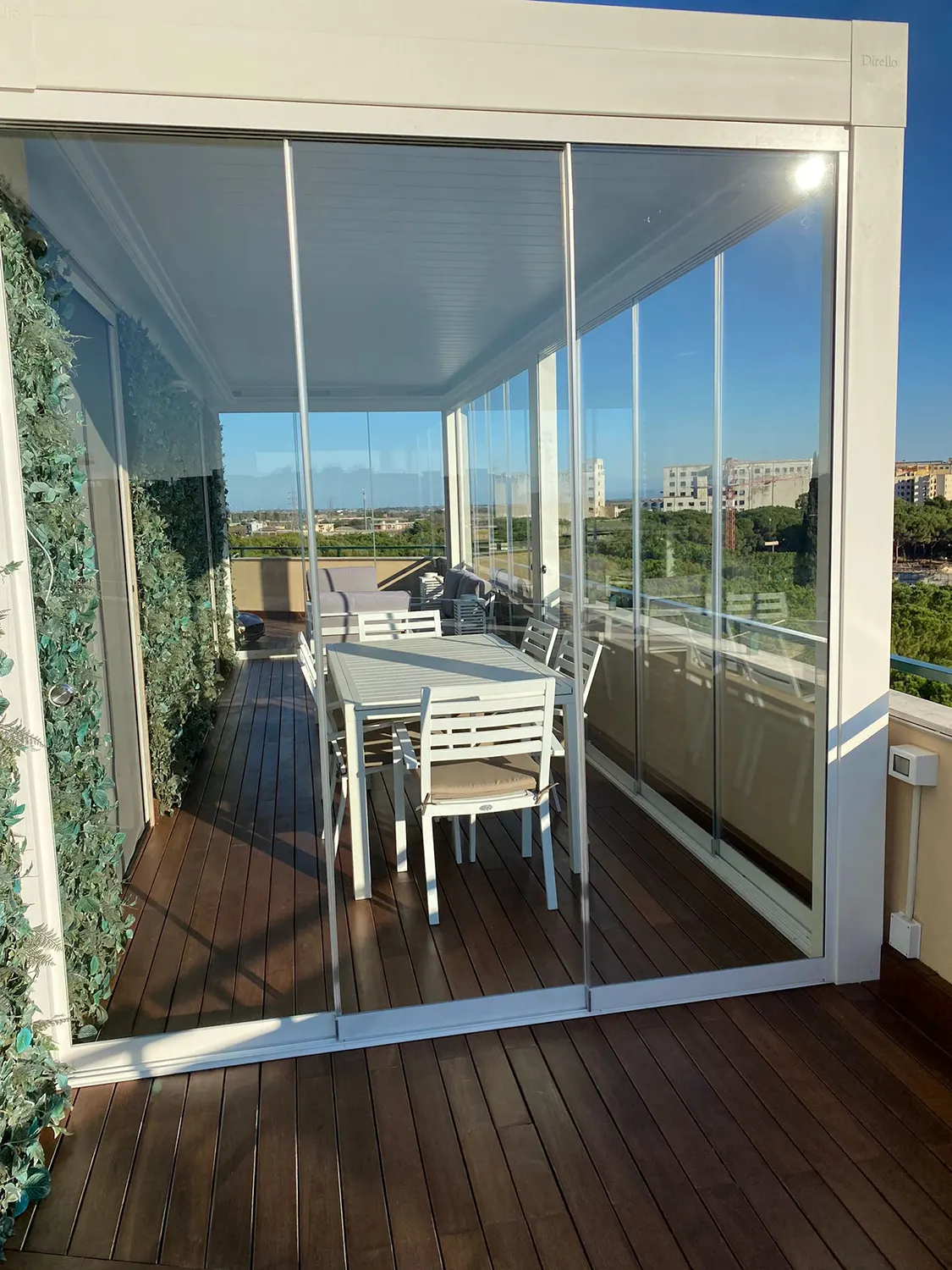 Si tratta di un sistema scorrevole di ante in vetro senza profili verticali che sostengono il suo peso sulla parte inferiore e scorrono orizzontalmente permettendo la rapida e semplice separazione degli spazi.