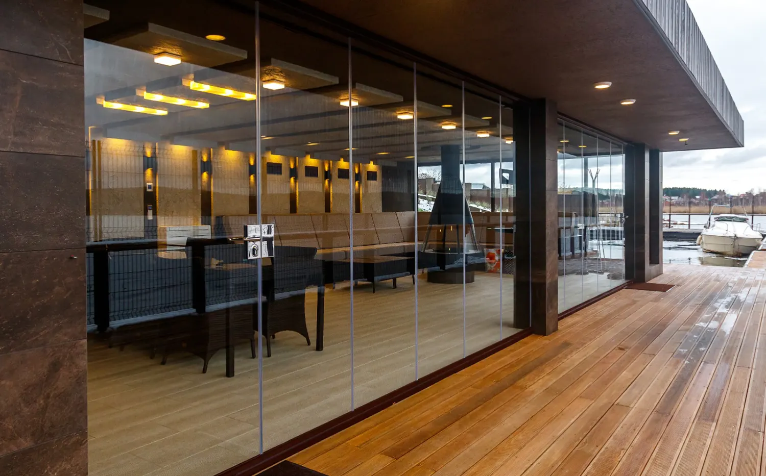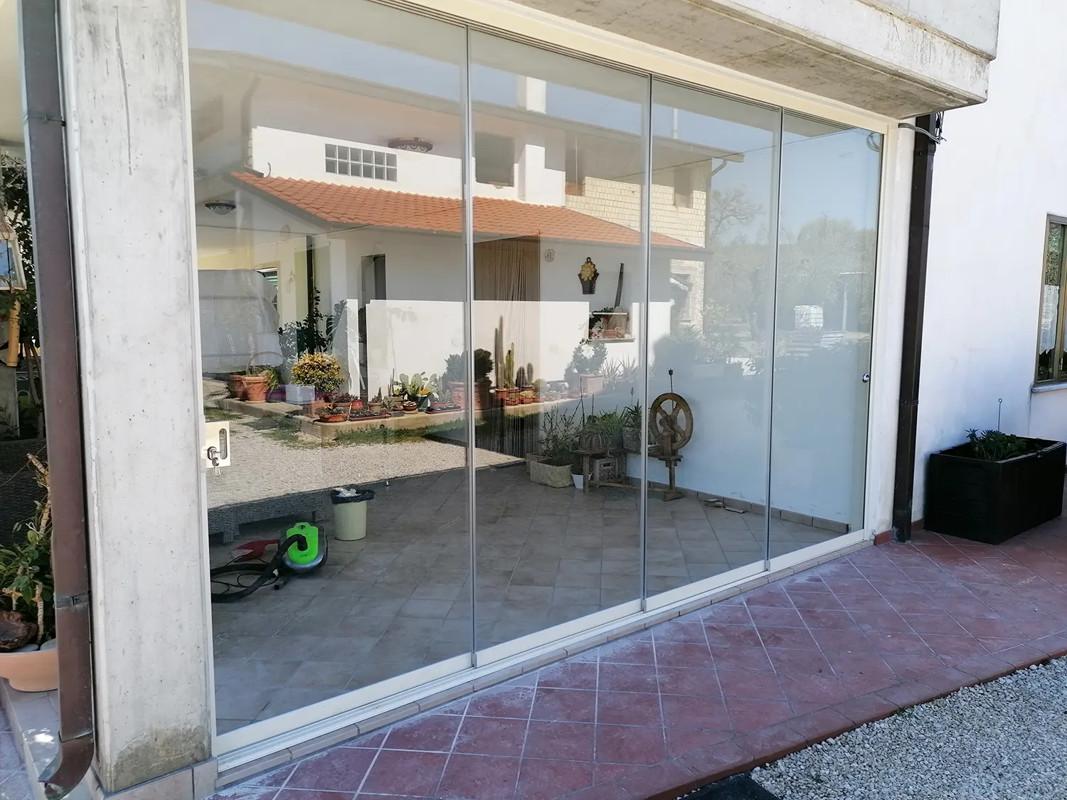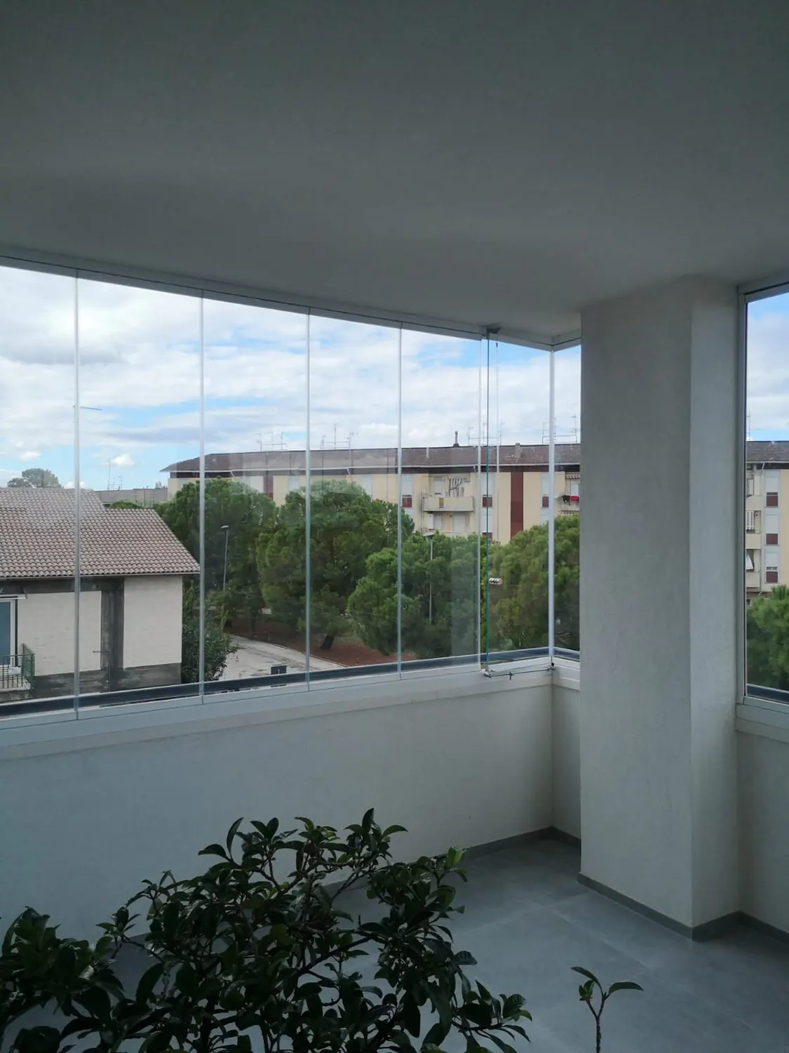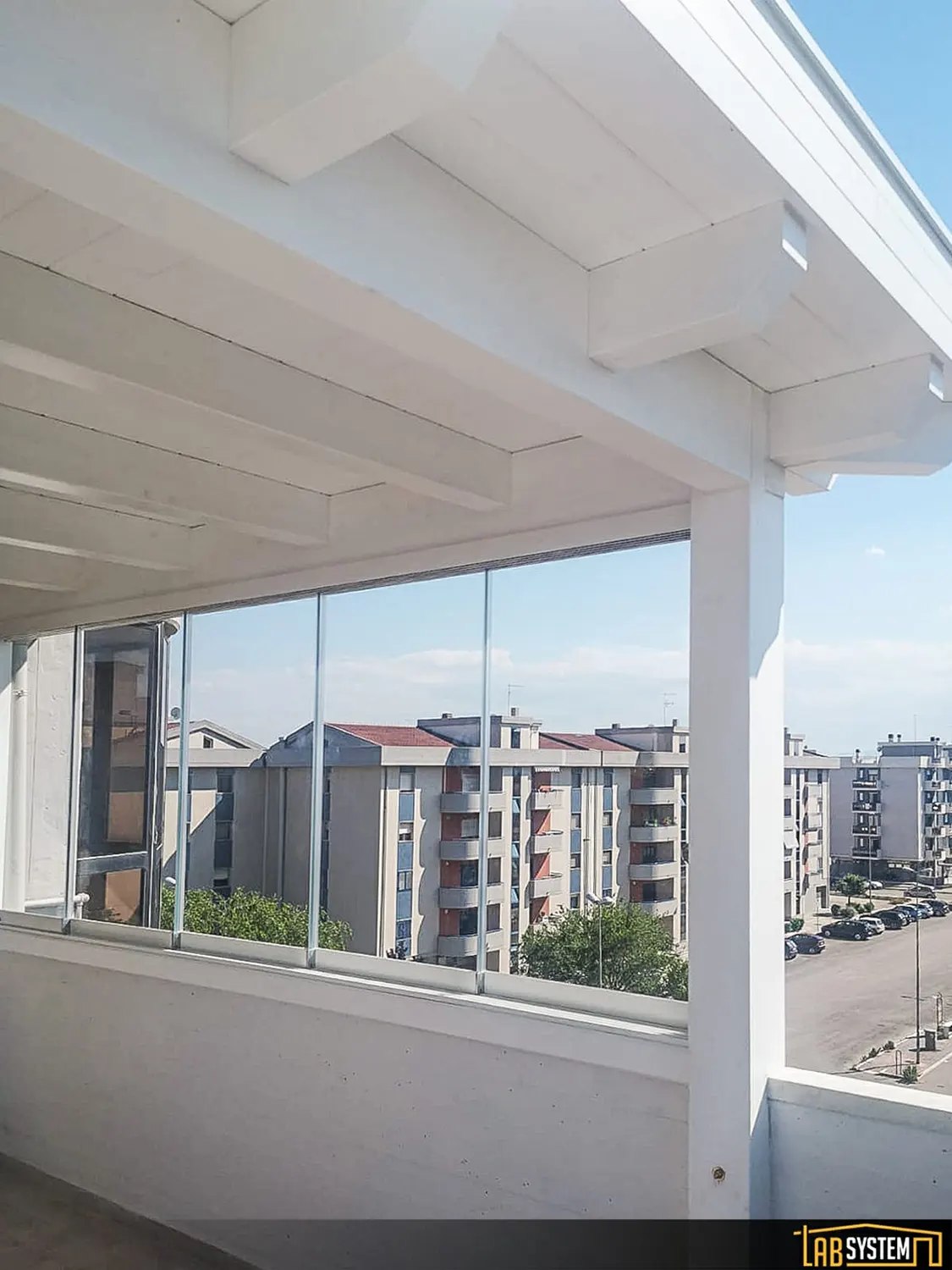 Si tratta di un sistema scorrevole di ante in vetro senza profili verticali che sostengono il suo peso sulla parte inferiore e scorrono orizzontalmente permettendo la rapida e semplice separazione degli spazi.